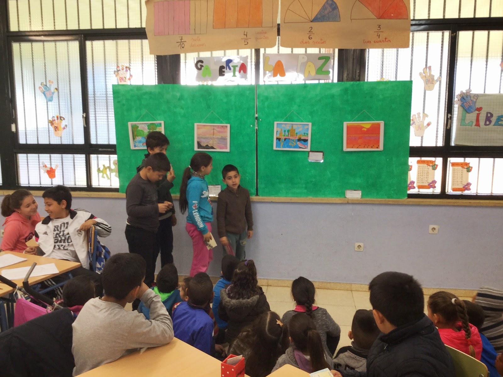 Pero los pintores de La Paz han sido los niños y niñas de 4.º, que han hecho una exposición de cuadros relacionados con el Guadalquivir. Ell@s mism@s han pintado los cuadros y nos han explicado qué materiales han utilizado y qué han querido expresar. Los juegos de luces del atardecer en Doñana les han quedado preciosos. ¡Artistas!